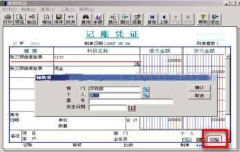 5.在填制憑證中,找到有“其它應(yīng)收款”科目的憑證,選中“其它應(yīng)收款”分錄,雙擊憑證右下角的 ,錄入輔助信息。