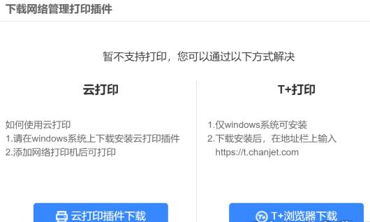 3、僅使用非T+瀏覽器時自動跳轉(zhuǎn)云打印界面,T+瀏覽器點擊打印時,無論是否開啟云打印,都按照原有T+打印執(zhí)行。