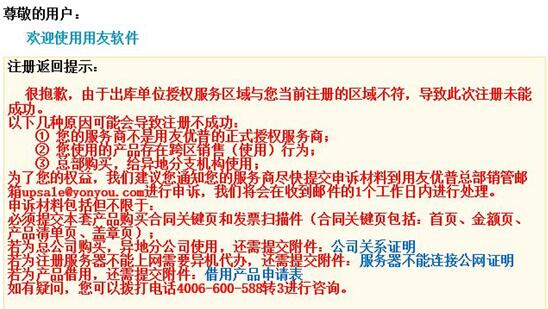 加密注冊時,點(diǎn)擊按鈕【提交注冊】,沒有返回服務(wù)識別碼和密碼,而是返回跨區(qū)注冊提示,如下圖。