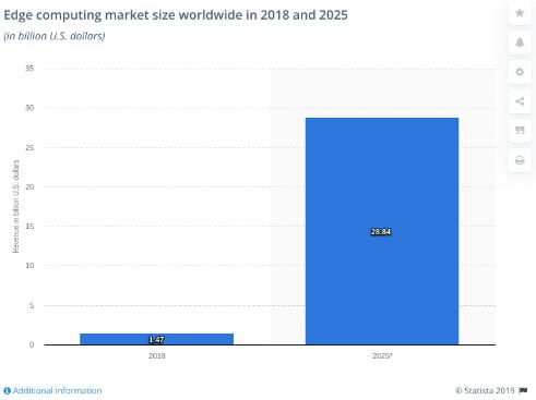 預(yù)計(jì)邊緣計(jì)算的市場(chǎng)不會(huì)增長(zhǎng)三到四倍!實(shí)際上,預(yù)計(jì)從 2018 年至 2025 年,邊緣計(jì)算的全球市場(chǎng)將增長(zhǎng)約 28 倍。