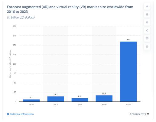 如今,AR 應(yīng)用程序?qū)⒐适伦優(yōu)楝F(xiàn)實(shí),以便兒童更好地理解和學(xué)習(xí)。混合現(xiàn)實(shí)的全球市場(chǎng)規(guī)模預(yù)計(jì)將在未來(lái)幾年中大幅增長(zhǎng)。實(shí)際上,估計(jì)到 2023 年將達(dá)到 1800 億美元。