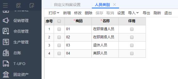 1、進(jìn)入“系統(tǒng)管理”-“基礎(chǔ)檔案設(shè)置”-“自定義檔案”,點(diǎn)擊“新增”增加一個(gè)“人員類別”檔案。